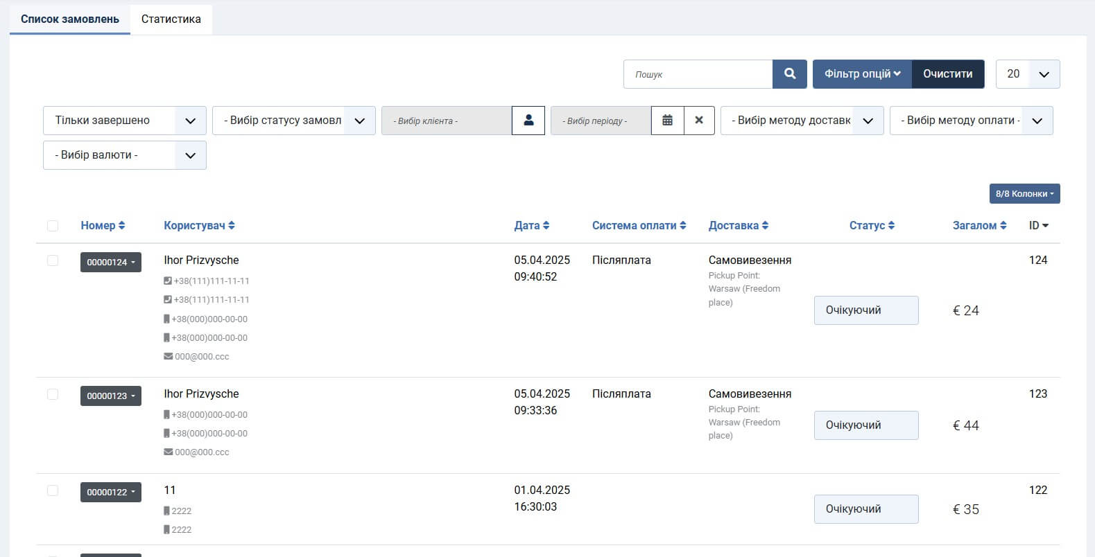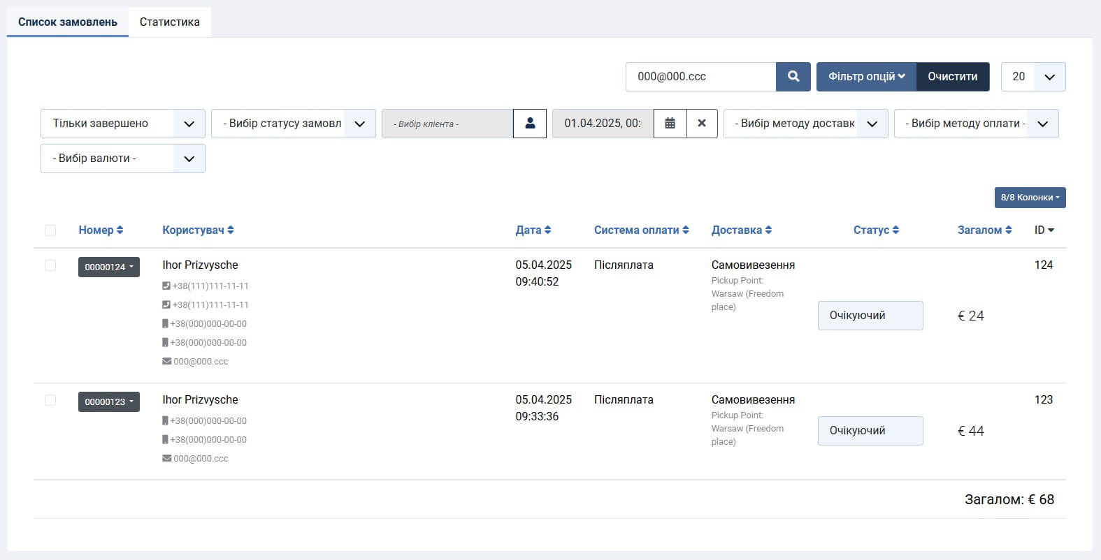 Все это позволяет менеджеру или владельцу магазина быстро и с гибкими параметрами найти нужный заказ для просмотра и обработки.