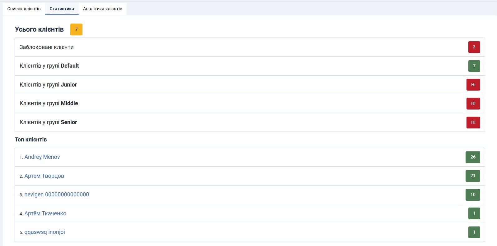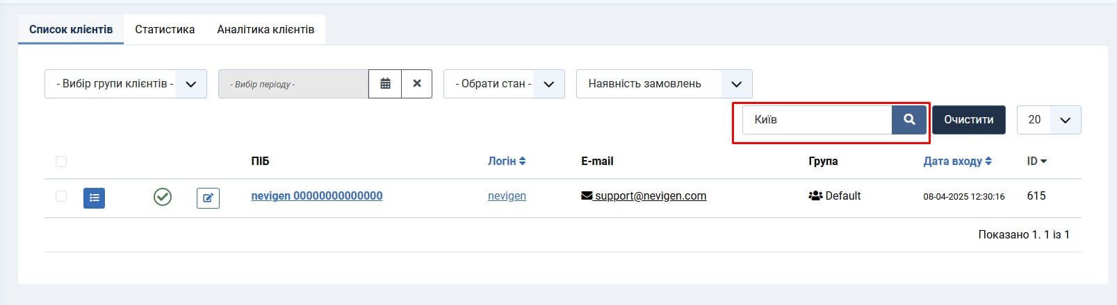 Создан дополнительный удобный фильтр для просмотра клиентов с заказами и без, а также возможность фильтра по периоду по дате входа клиентов.