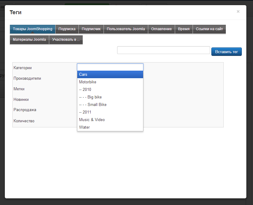 Вставка товаров в рассылку AcyMailling для JoomShopping