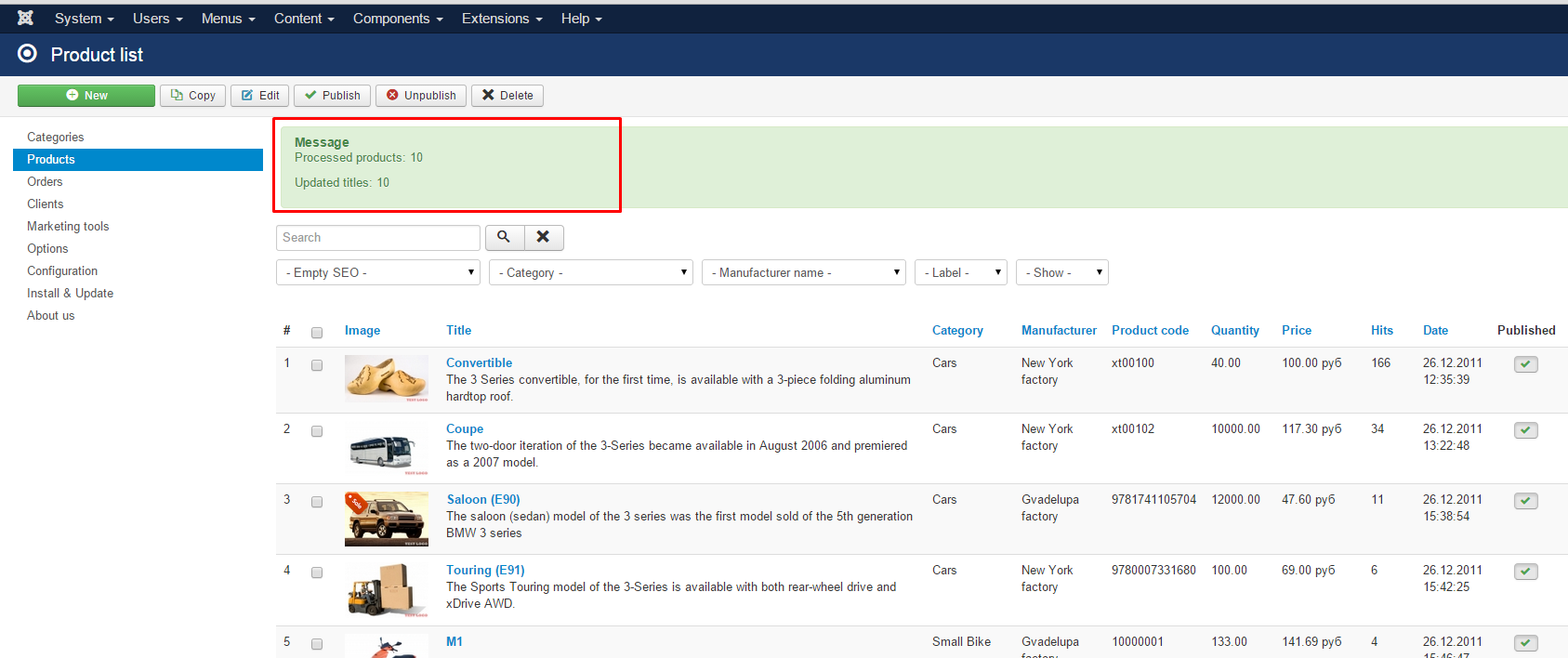 Позволяет автоматизировать формирование списков аналогичных и/или сопутствующих товаров JoomShopping