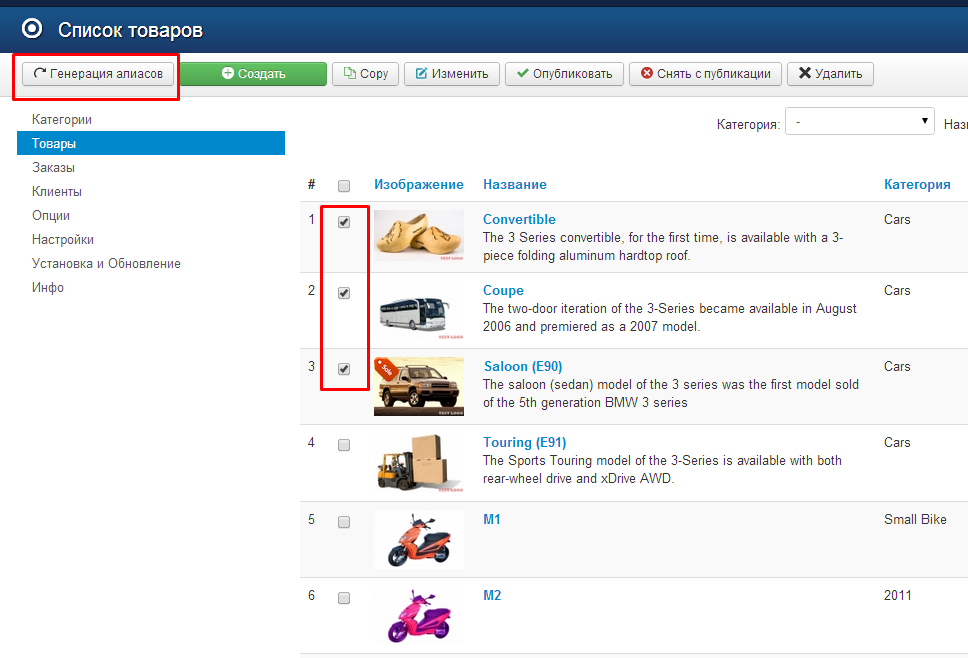 Данный плагин дает возможность быстрой генерации алиасов для товаров, категорий и производителей в JoomShopping.