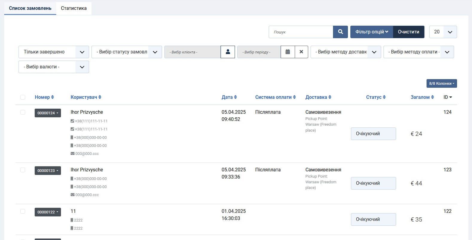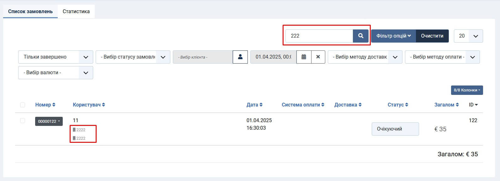 Созданы дополнительные удобные фильтры для просмотра заказов, а также расширенная система поиска заказов по разным признакам: id заказа, номера заказа, е-мейла клиента, имени клиента, фамилии клиента, телефона, мобильного телефона в основном адресе и адресе доставки, а также по параметрам доставки. И конечно по названию товара/ов в заказе