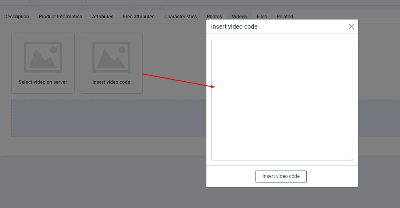 - Вкладка "Видео" — дает возможность добавлять видеофайлы, выбирать их на сервере через MediaManager Joomla или вставлять код с видеосервисов.