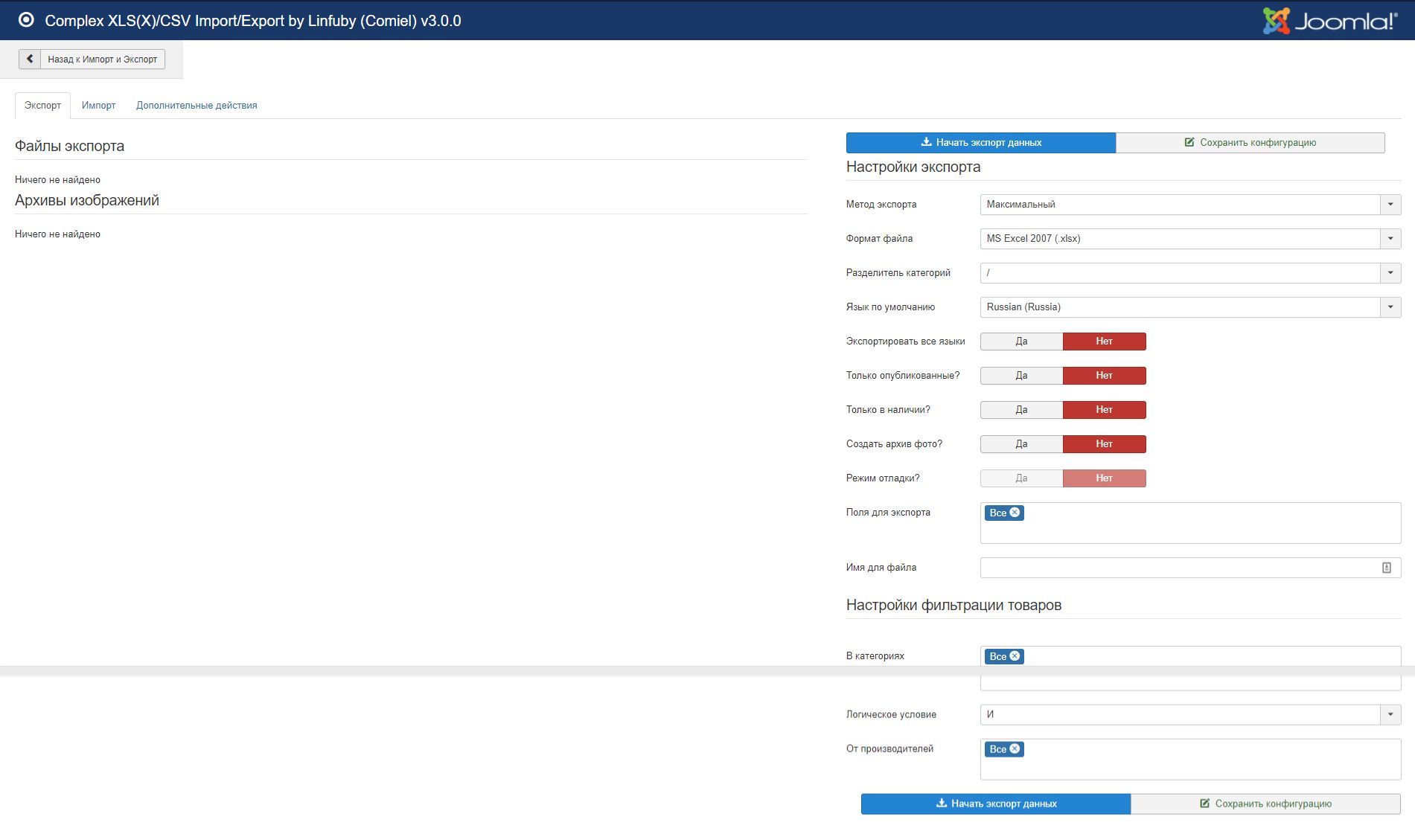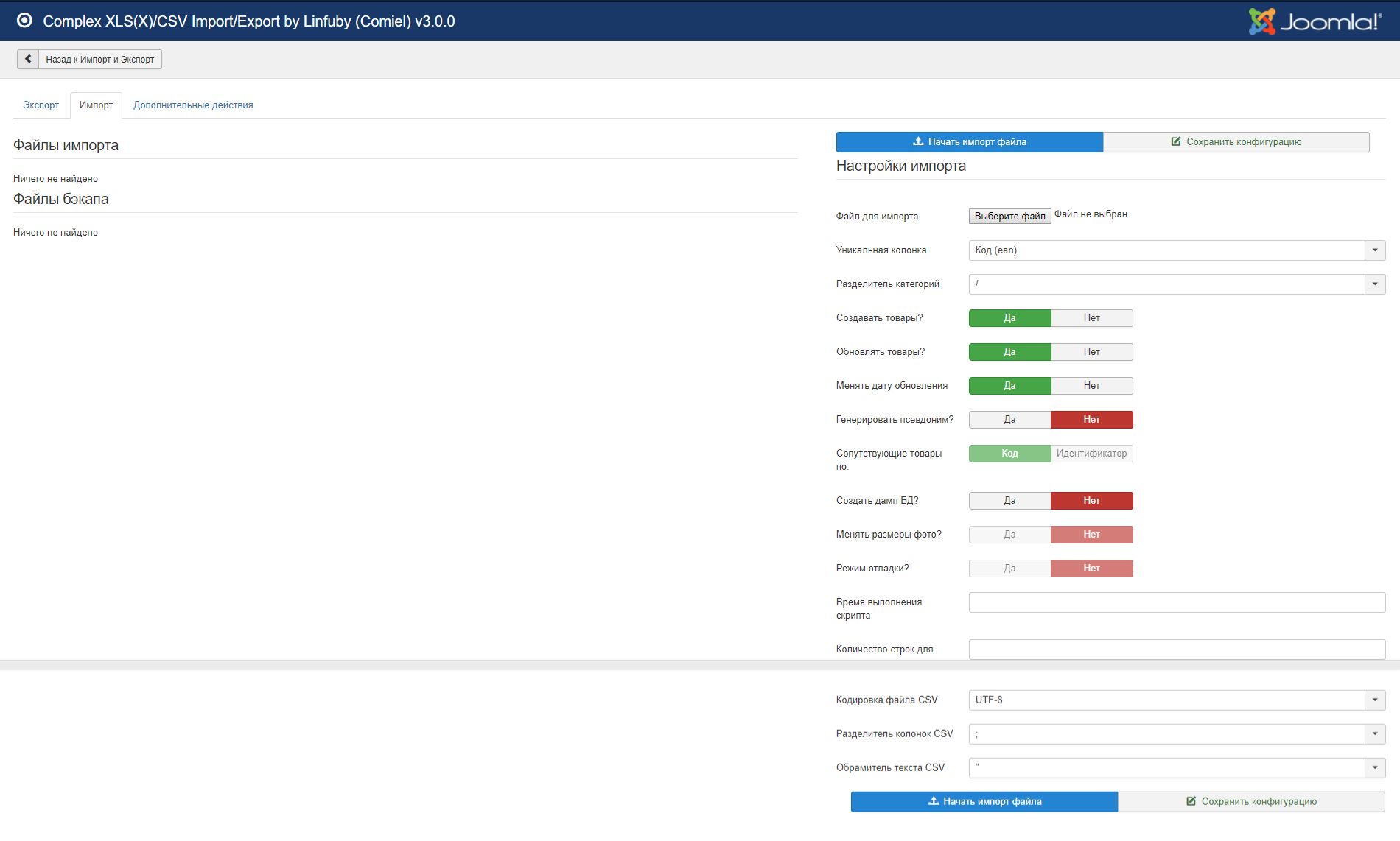 Расширенный импорт экспорт Товаров из MS Excel (XLS, XLSX), CSV в JoomShopping