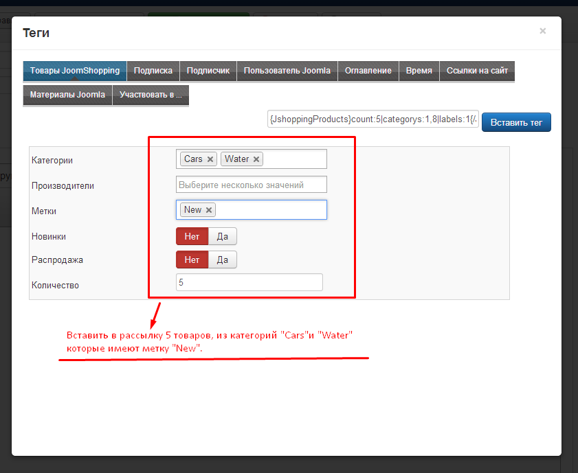 Вставка товаров в рассылку AcyMailling для JoomShopping