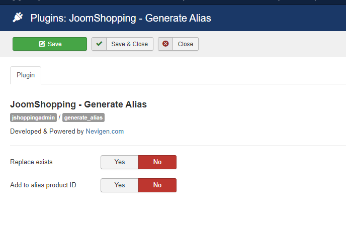 Данный плагин дает возможность быстрой генерации алиасов для товаров, категорий и производителей в JoomShopping.