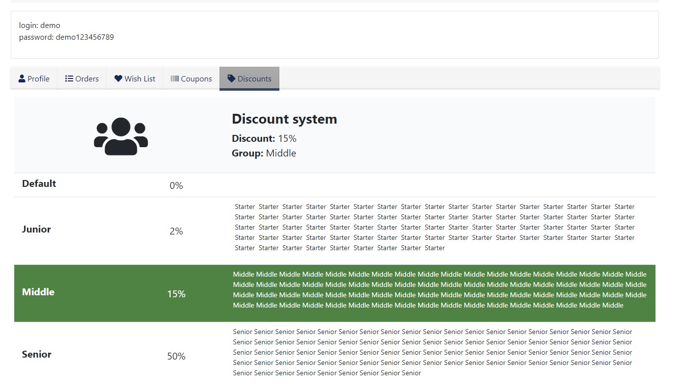 Add new template events tmpl_nevigen_profile_main_coupons_html_end, tmpl_nevigen_profile_main_discount_html_end, tmpl_nevigen_profile_main_info_html_end, tmpl_nevigen_profile_main_orders_html_end, tmpl_nevigen_profile_main_wishlist_html_end